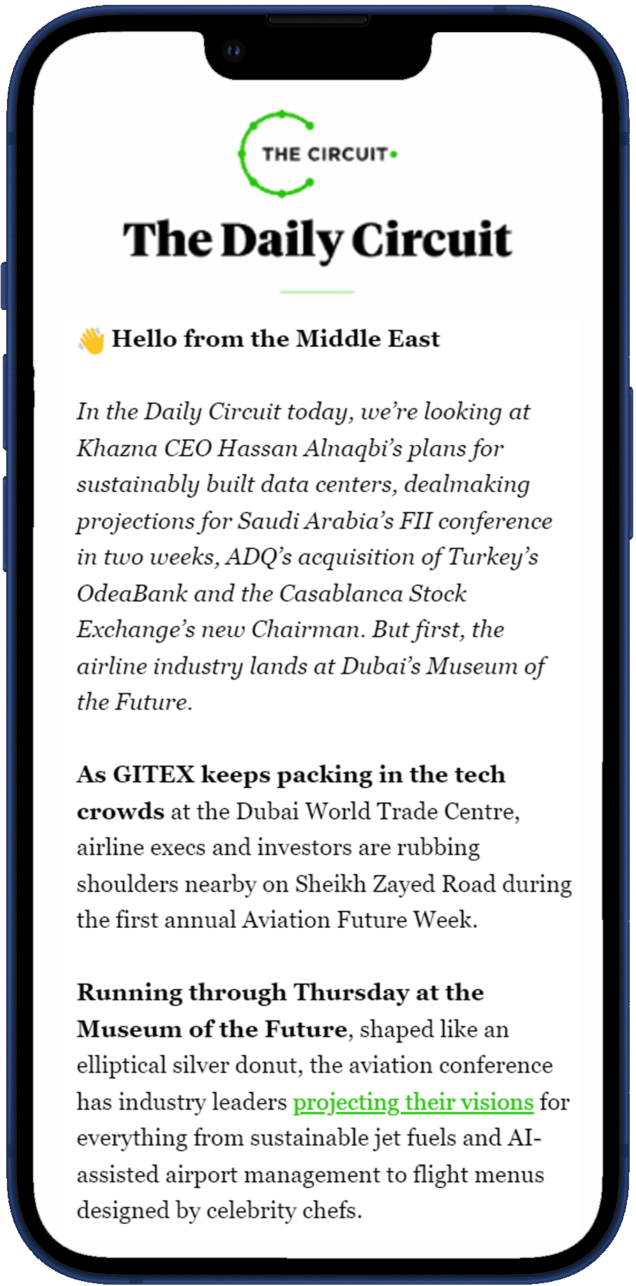 The Daily Circuit newsletter connects doers and dealmakers in the Middle East and those who care about the region from afar. Sign up today to be among the first in the know.