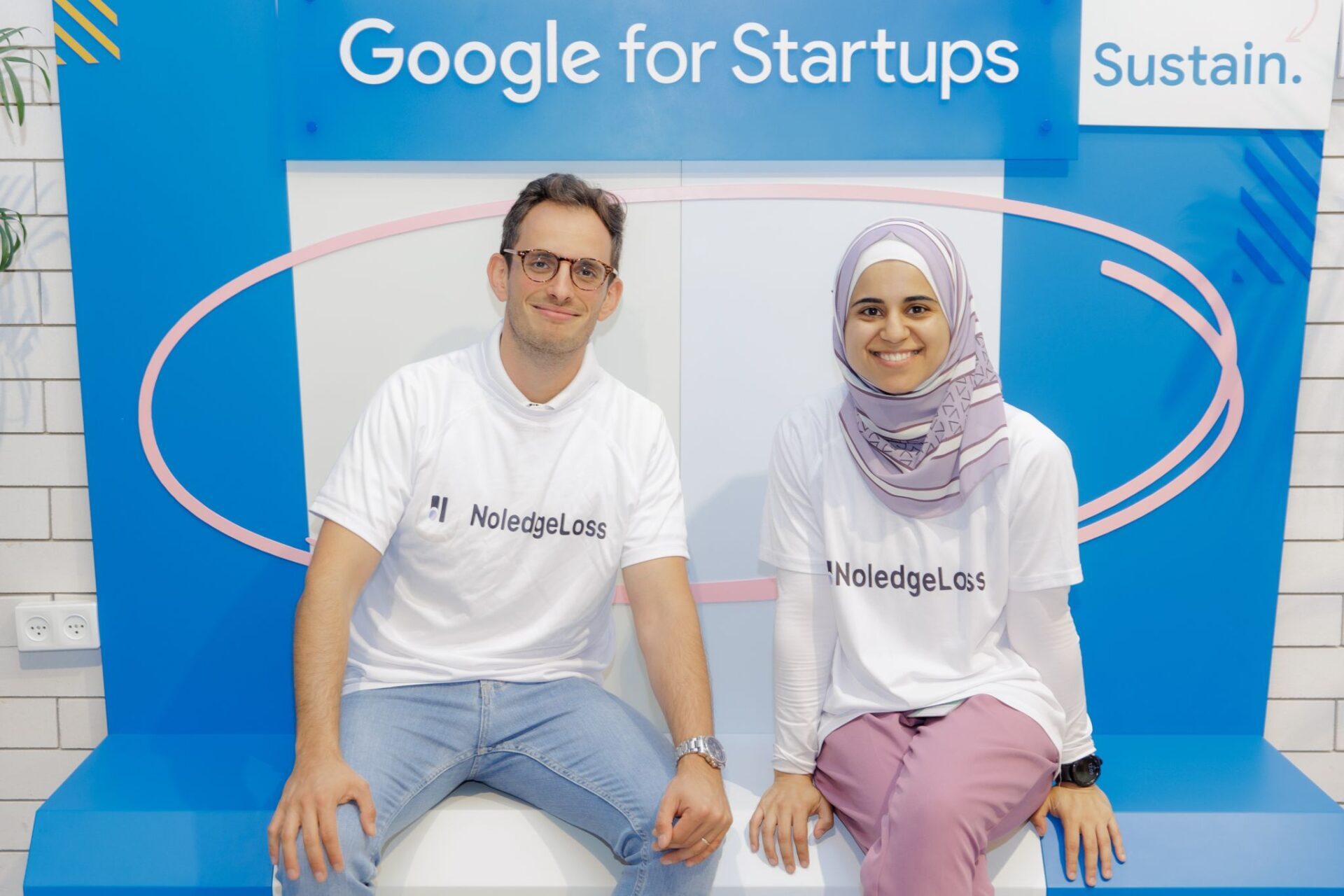 NoledgeLoss co-founders Enas Awwad and Tal Givati at Google for Startups campus in Tel Aviv