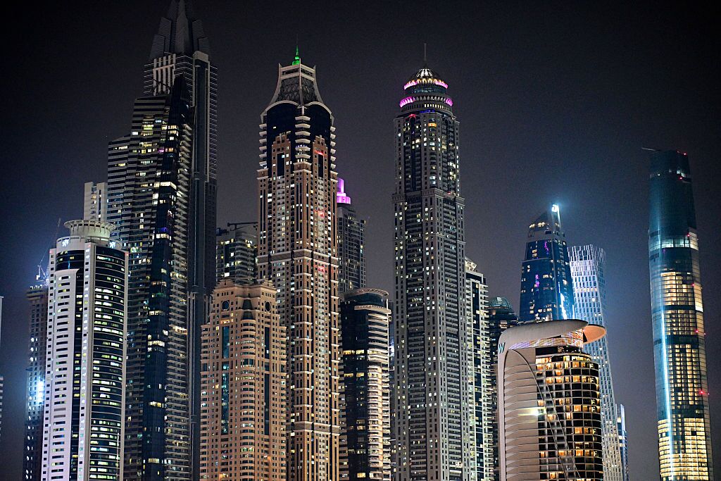 A cluster of skyscrapers along the Dubai Marina waterfront