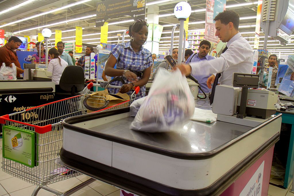 Plastic bags at Carrefour Hyper Market in Dubai