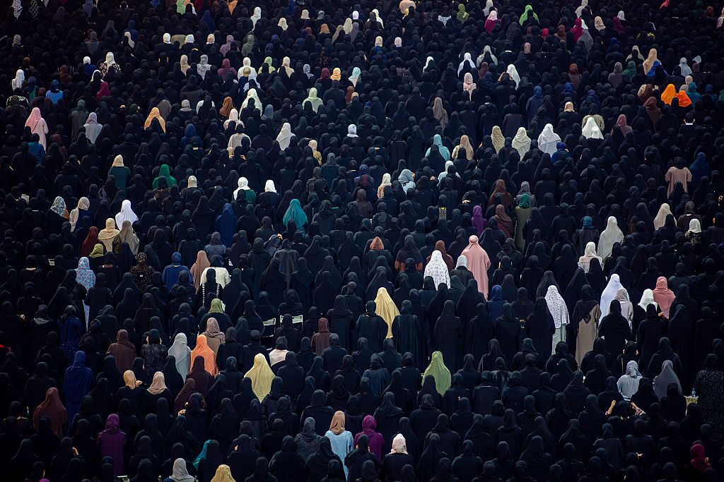 Women gather at the Sheikh Zayed Grand Mosque in Abu Dhabi to pray and mark Laylat al-Qadr, the night when the Quran is believed to have been first revealed (Mohammed Zarandah/Anadolu via Getty Images)