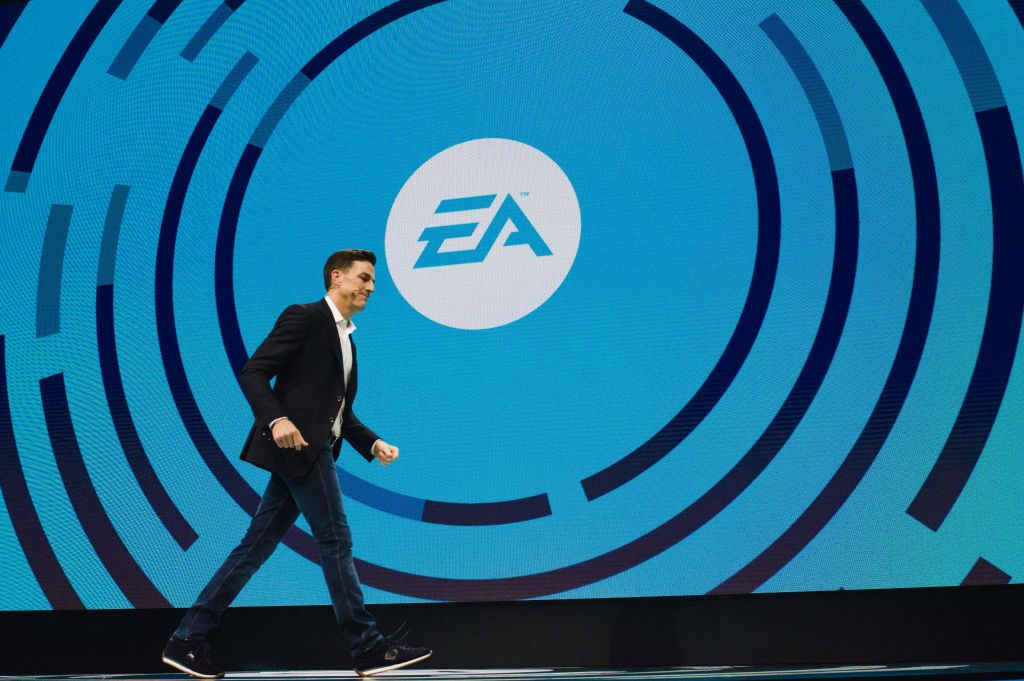 Electronic Arts CEO Andrew Wilson speaks about the Battlefield V video game during the company's 2018 EA Play event in Los Angeles